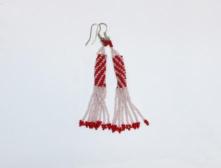 Add a vibrant pop to your accessory collection with these handcrafted red and white beaded tassel earrings. Featuring a striking spiral pattern on the upper section, the earrings gracefully cascade into flowing strands of white beads tipped with bold red ends. Lightweight and eye-catching, they are perfect for festive occasions or to elevate casual outfits with a touch of traditional flair.